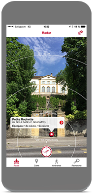 La fonction « Radar » vous permet d’identifier en un clic les bâtiments de référence qui se trouvent devant vous et ce dans un rayon de 150 m. Vous désirez en savoir plus ? Un clic supplémentaire sur l’info-bulle et vous obtenez une notice historique complète sur le bâtiment, rédigée par des historiens de l’art spécialisés. Et comme Swiss Art To Go est doué de la parole, il vous fait la lecture pour que vous puissiez mieux vous concentrer sur l’observation du monument.